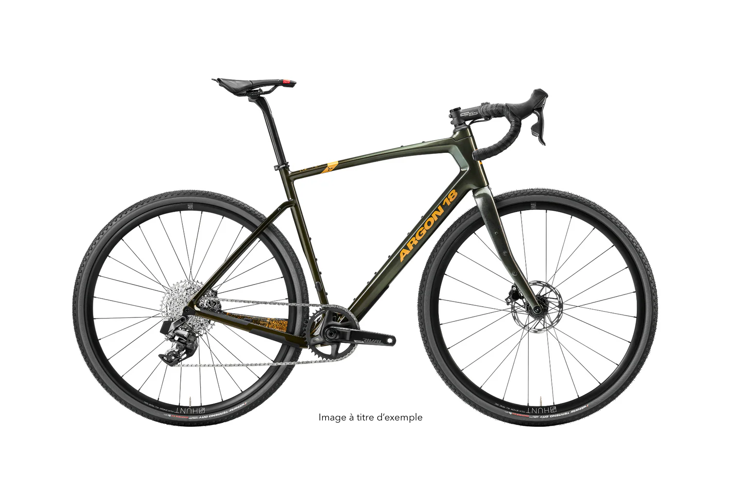 Photo à titre d'exemple - Argon 18 Dark Matter monté maison : transmission SRAM Rival/Apex AXS sans fil, roues WTB tubeless pour performance et confort sur gravelle. Un montage fiable, moderne et prêt pour l’aventure. Lire plus